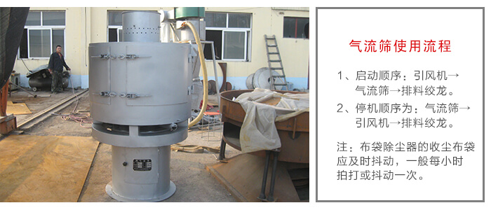 氣流篩組操作啟動順序:引風機→氣流篩→排料絞龍。