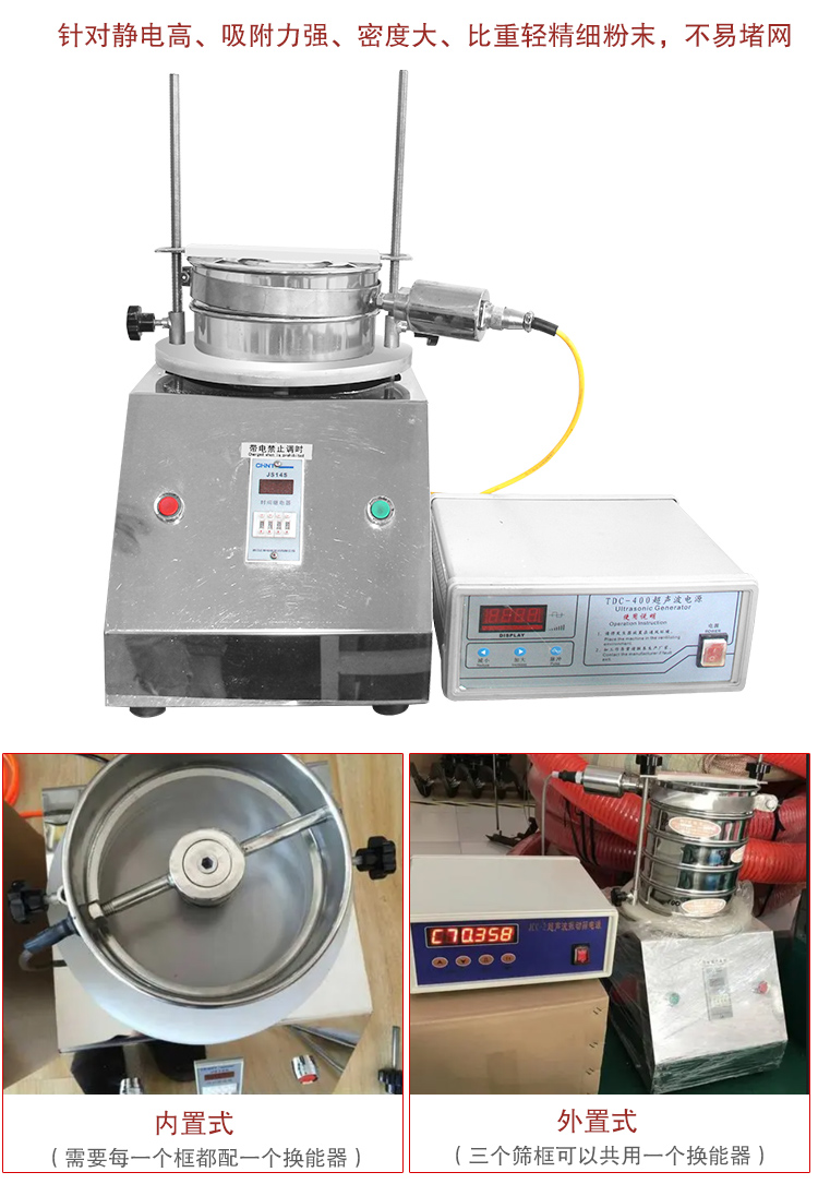 超聲波試驗(yàn)篩的供電說明: 超聲波控制系統(tǒng)與試驗(yàn)篩分別供電,試驗(yàn)篩與超聲波電源均為單相供電。